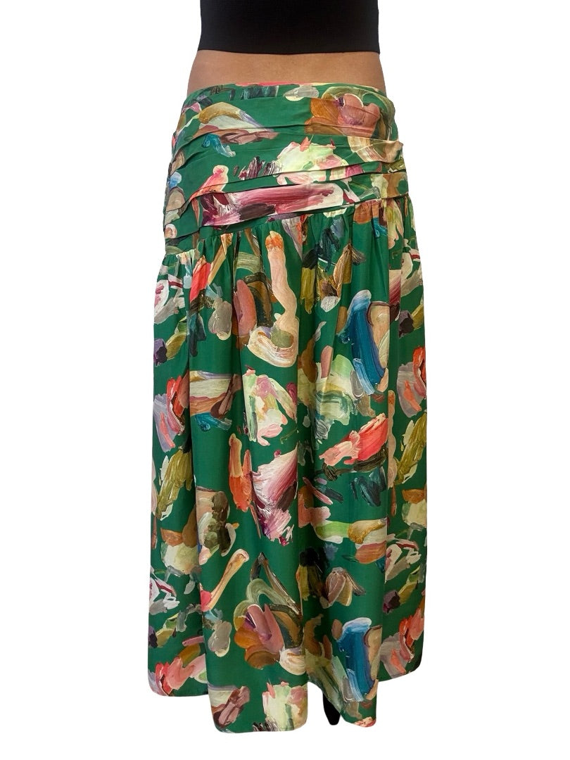 Alemais Green Arlo Paint Print Skirt. Size: 12