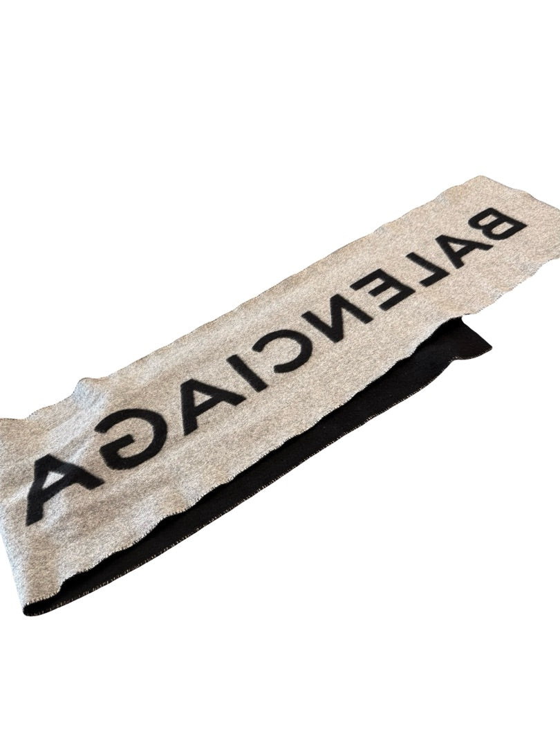 Balenciaga Black / Grey Two Tone Scarf w/ Logo. Size: 30cmx205cm