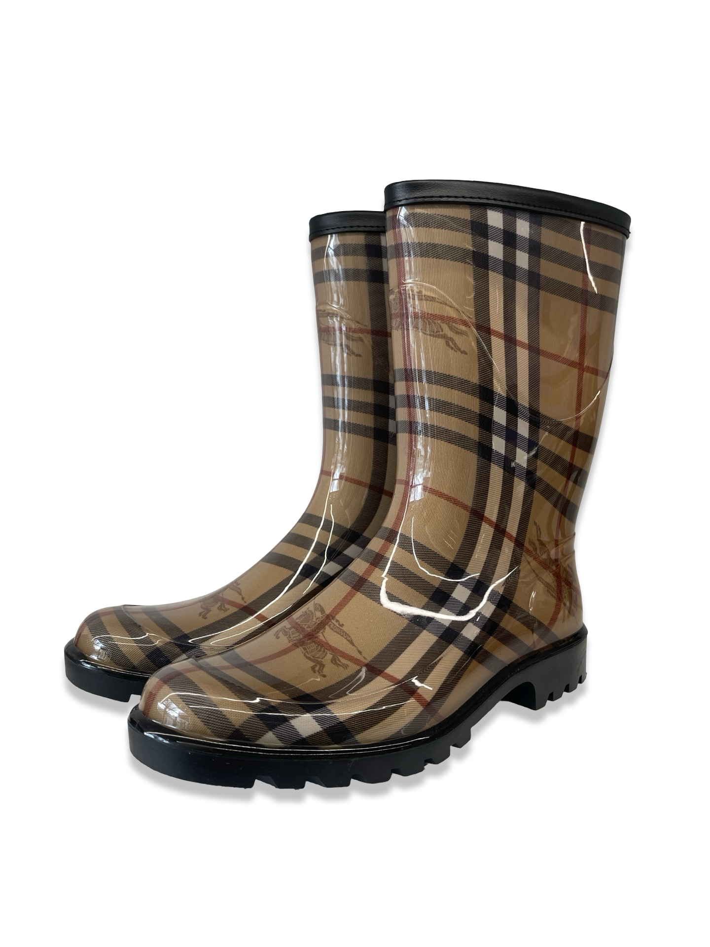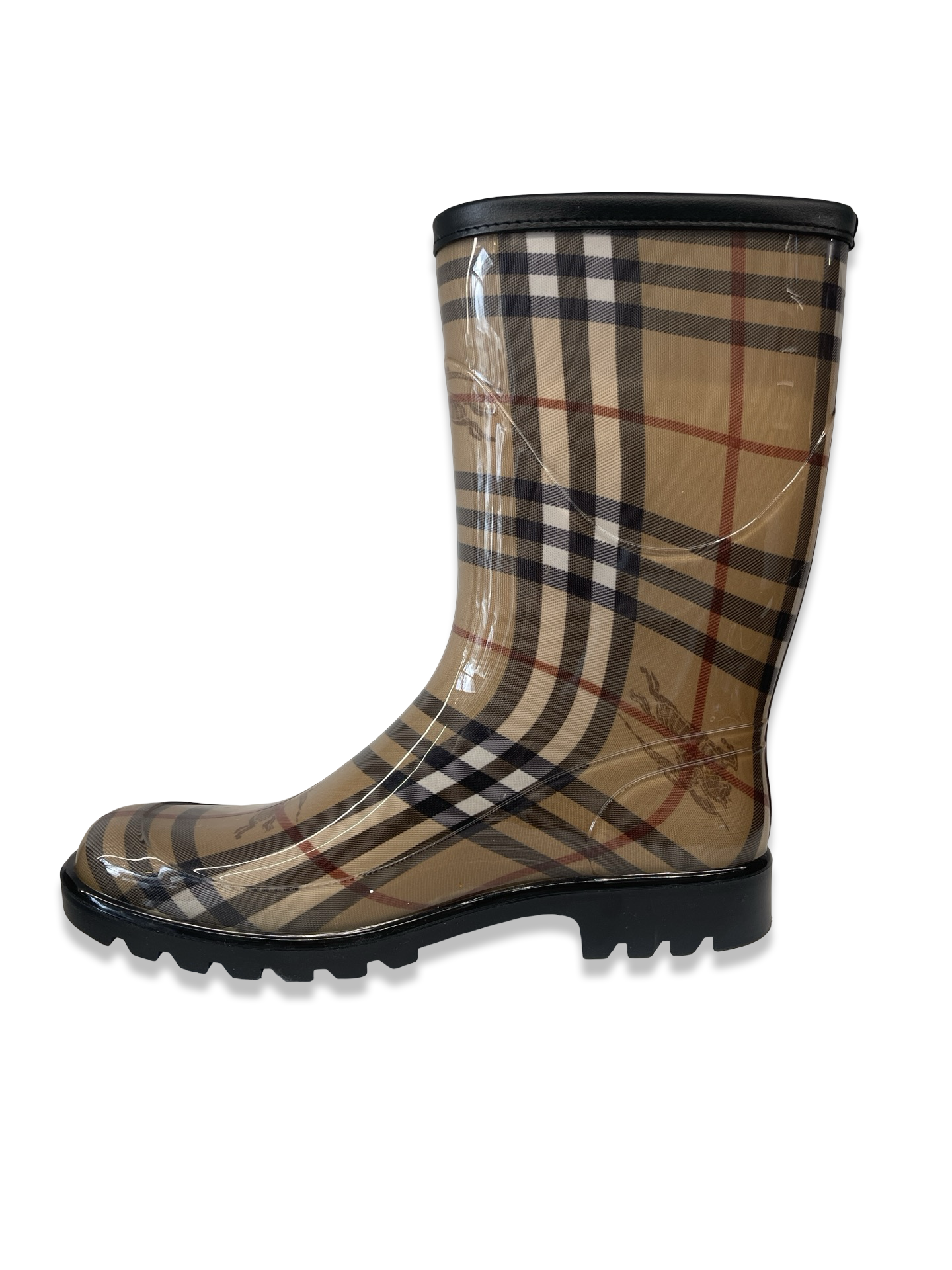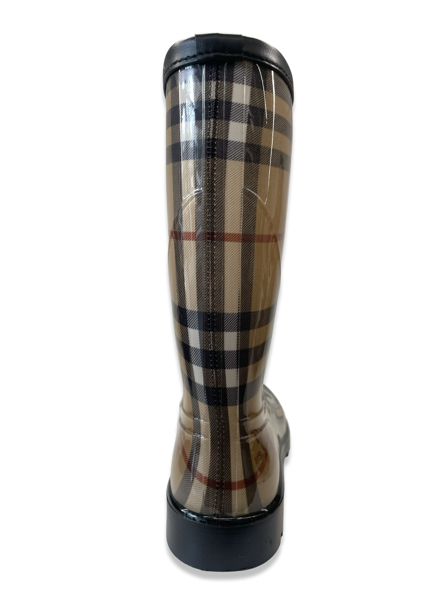 Burberry Tan Check 'Haymarket' Rain Boot. Size: 38