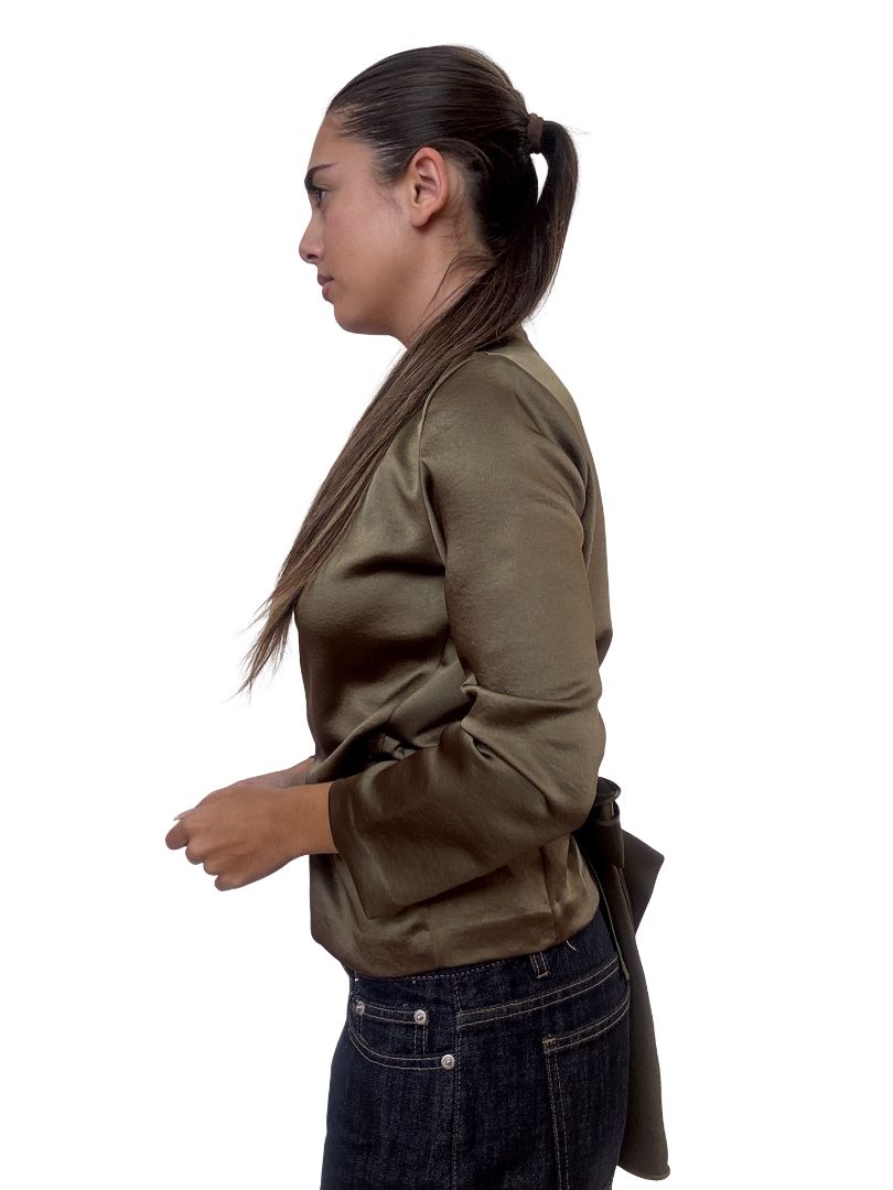 Carla Zampatti Dark Green Satin Wrap Top. Size: 6