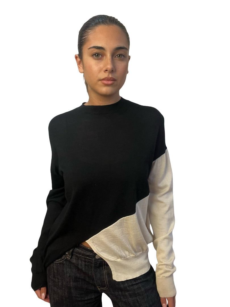 Celine Black / Cream Two Tone Knit Long Sleeve. Size: XS
