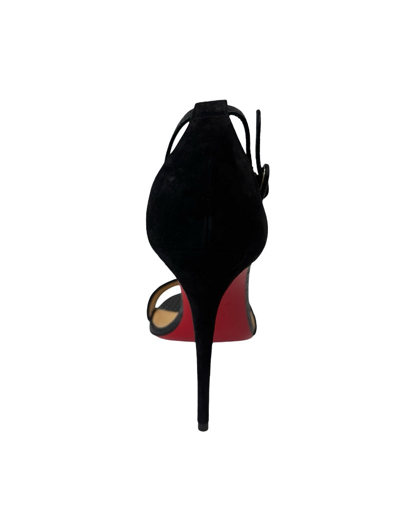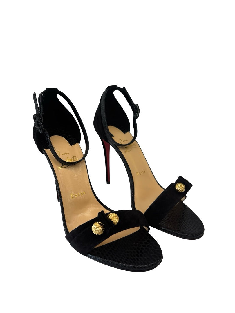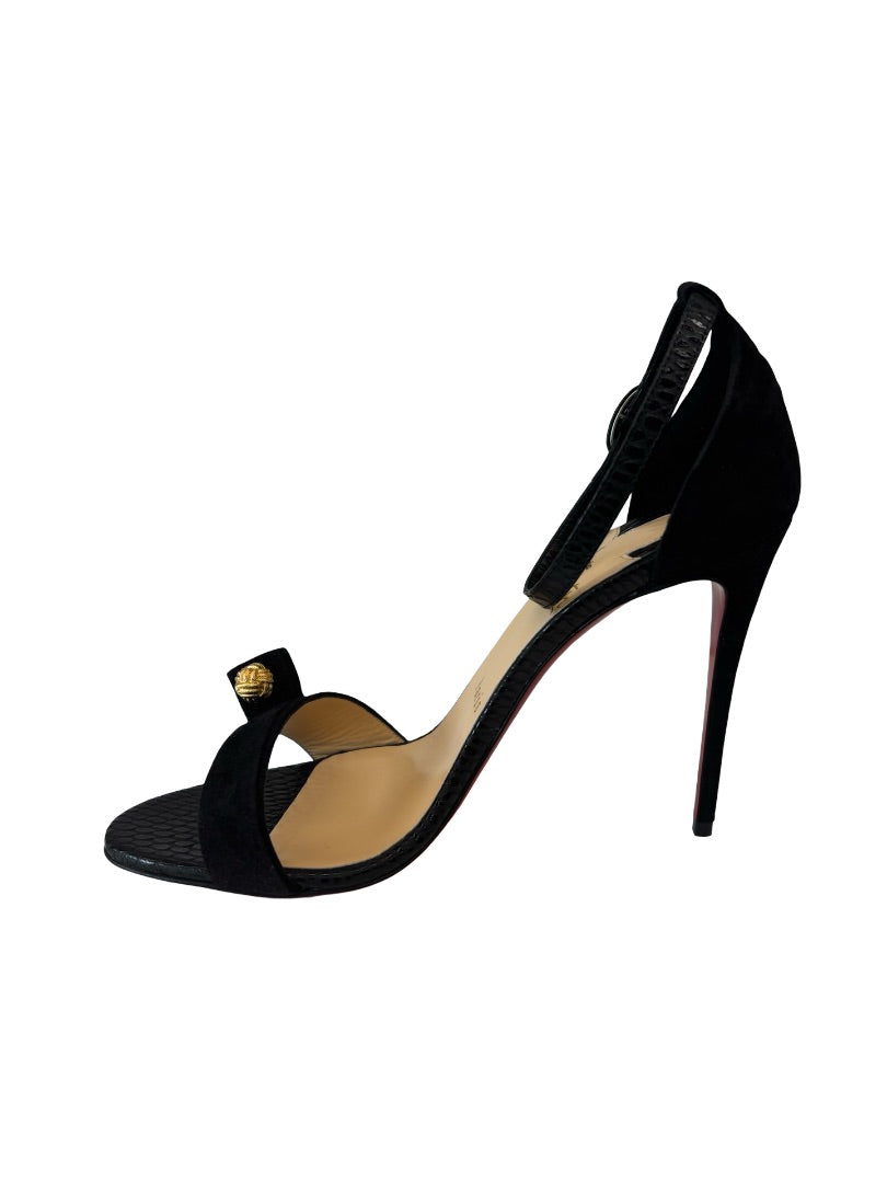 Christian Louboutin Black 100mm Mixed Leather Knit Sandal Heels. Size: 39