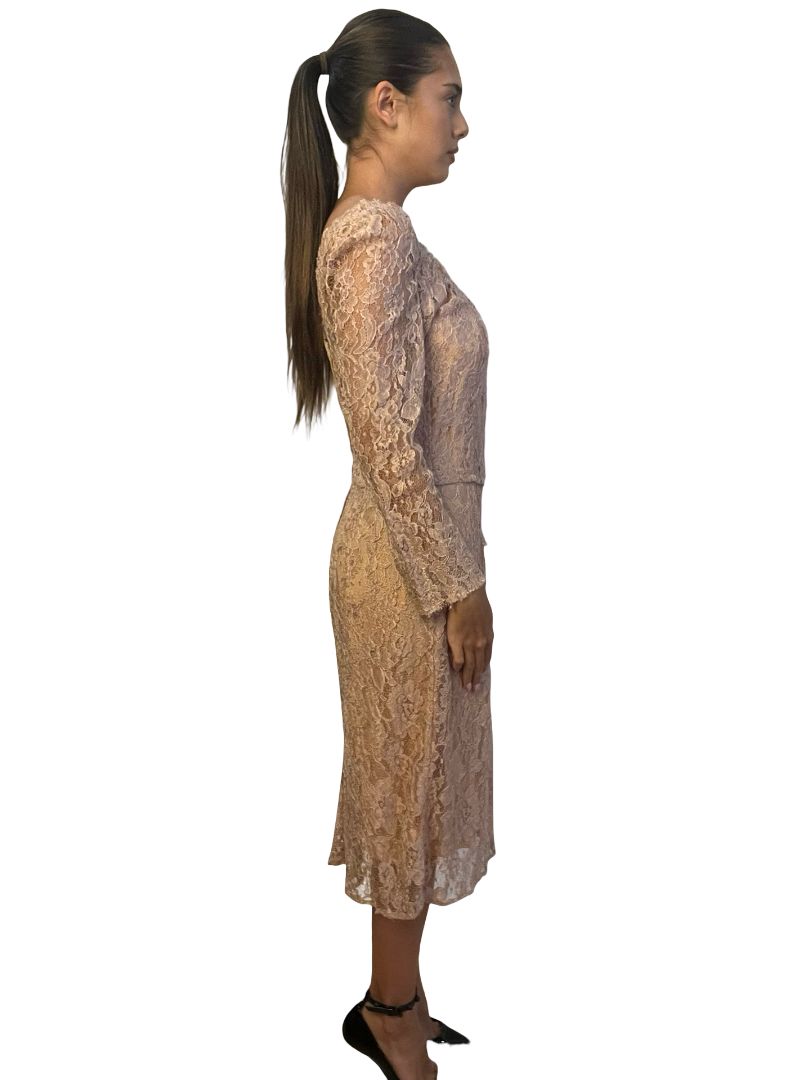 Dolce & Gabbana Nude Lace Midi Dress. Size: 46