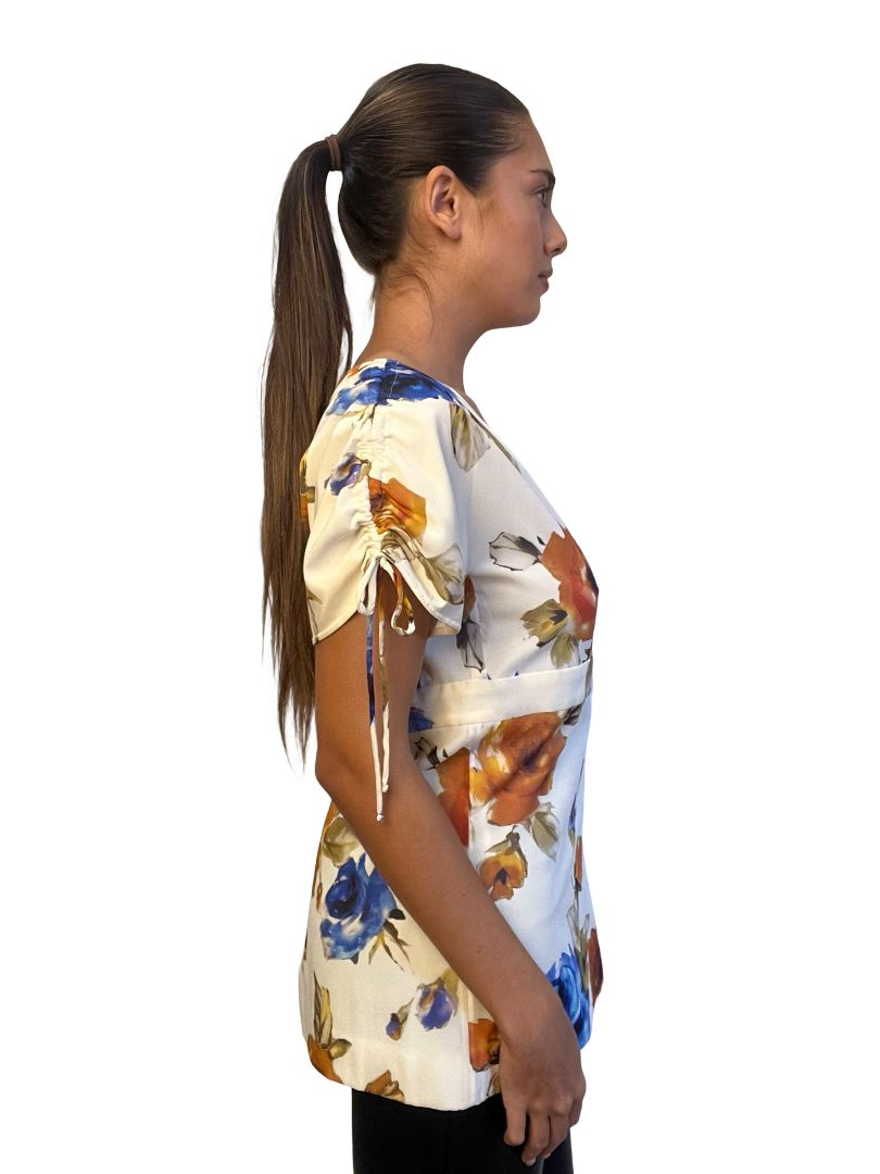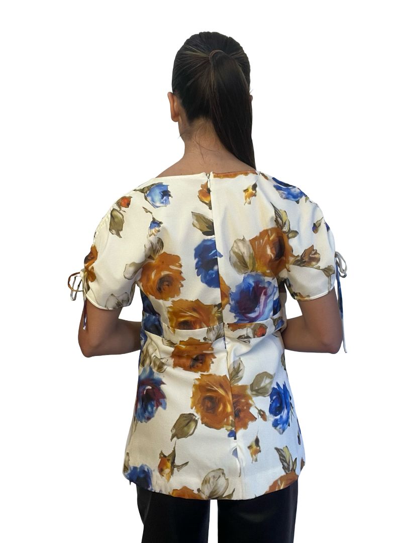Dolce & Gabbana Off-White / Multi-Colour Floral Print Short Sleeve Blouse. Size: 46