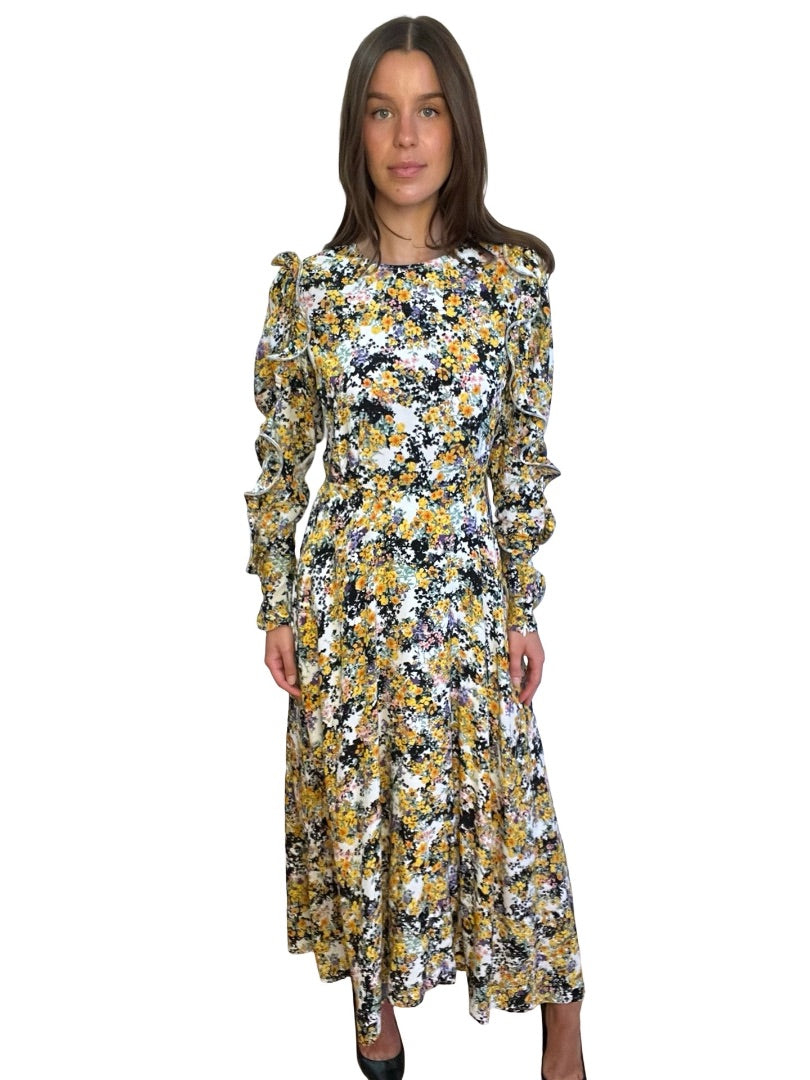 Essential Antwerp Yellow/White Floral Ruffle Dress. Size: 36