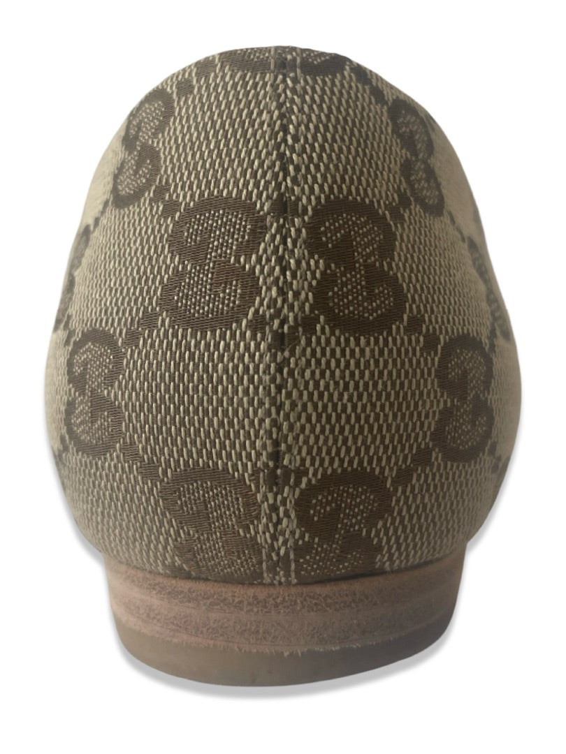 Gucci Brown GG Monogram Peep Toe Flats. Size: 38.5