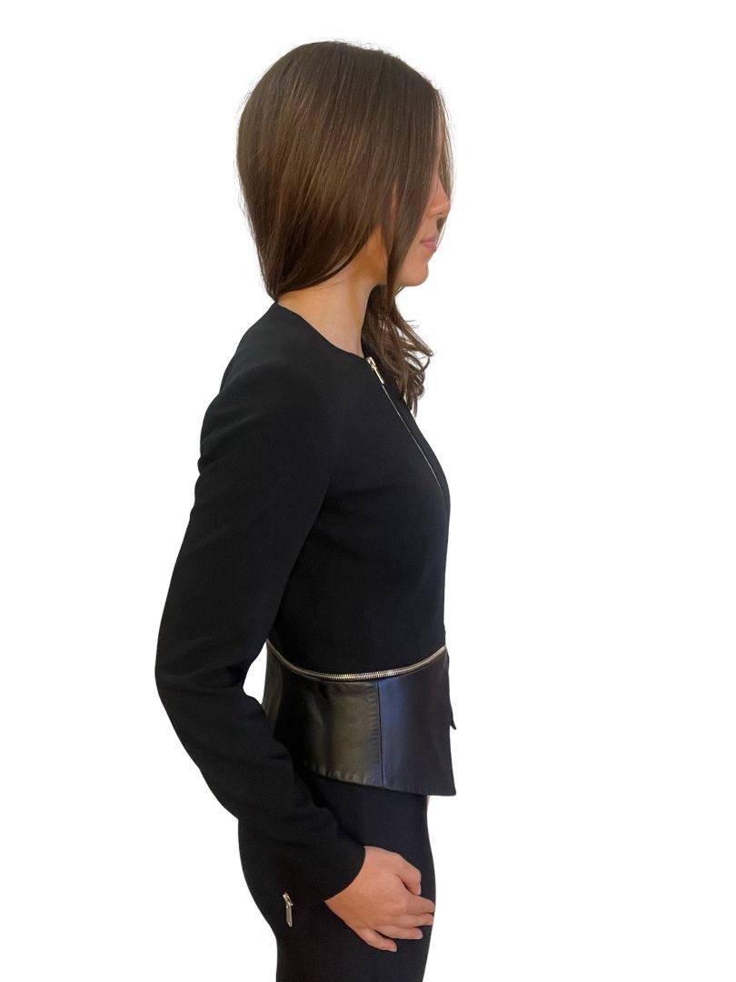 Michael Kors Black Wool/Leather Zipper Jacket. Size: 4