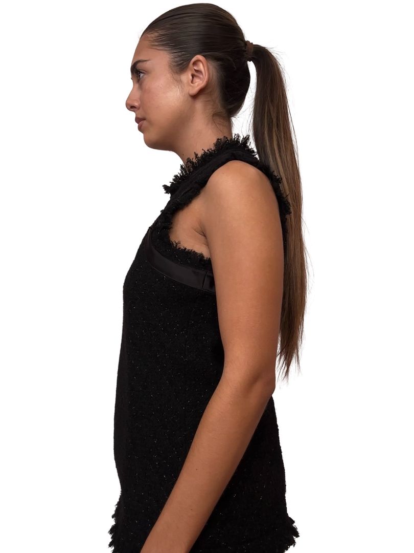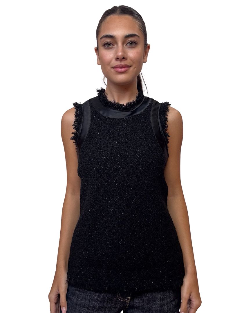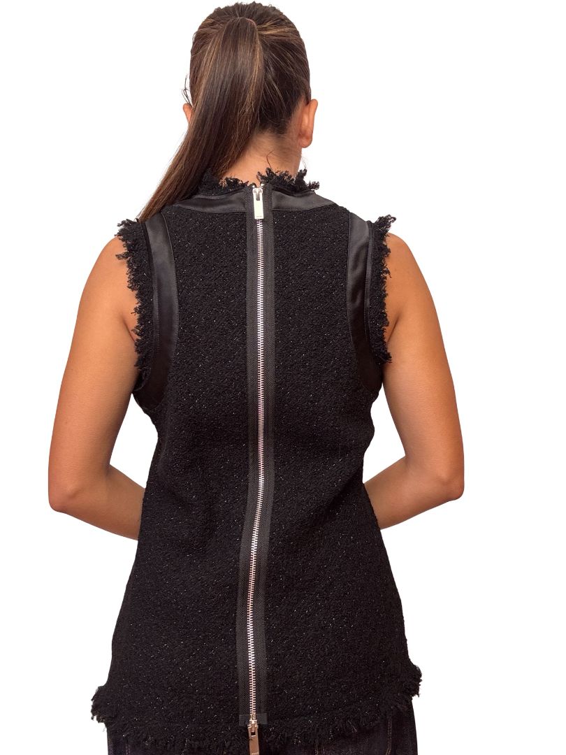 Sacai Black Tweed Distressed Zip Top. Size: 2