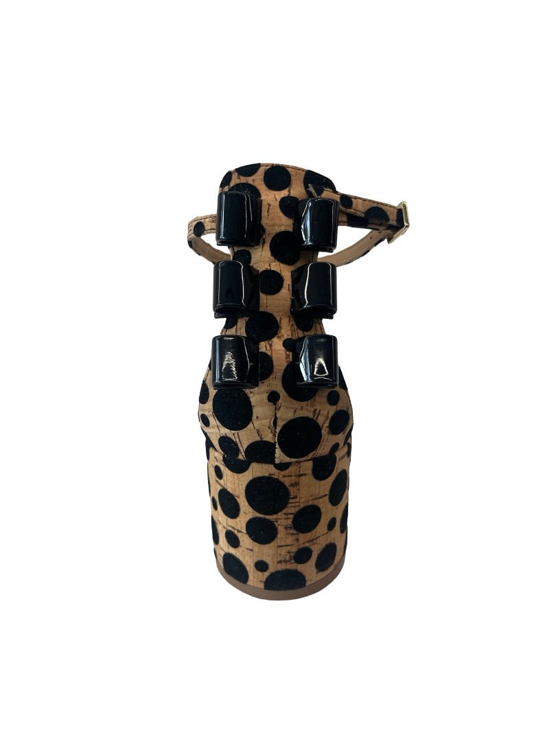 Salvatore Ferragamo Black / Tan Polka Dot Cork Connie Block Heel. Size: 8