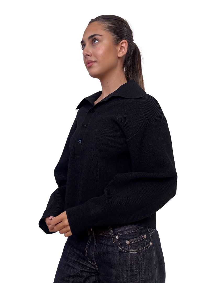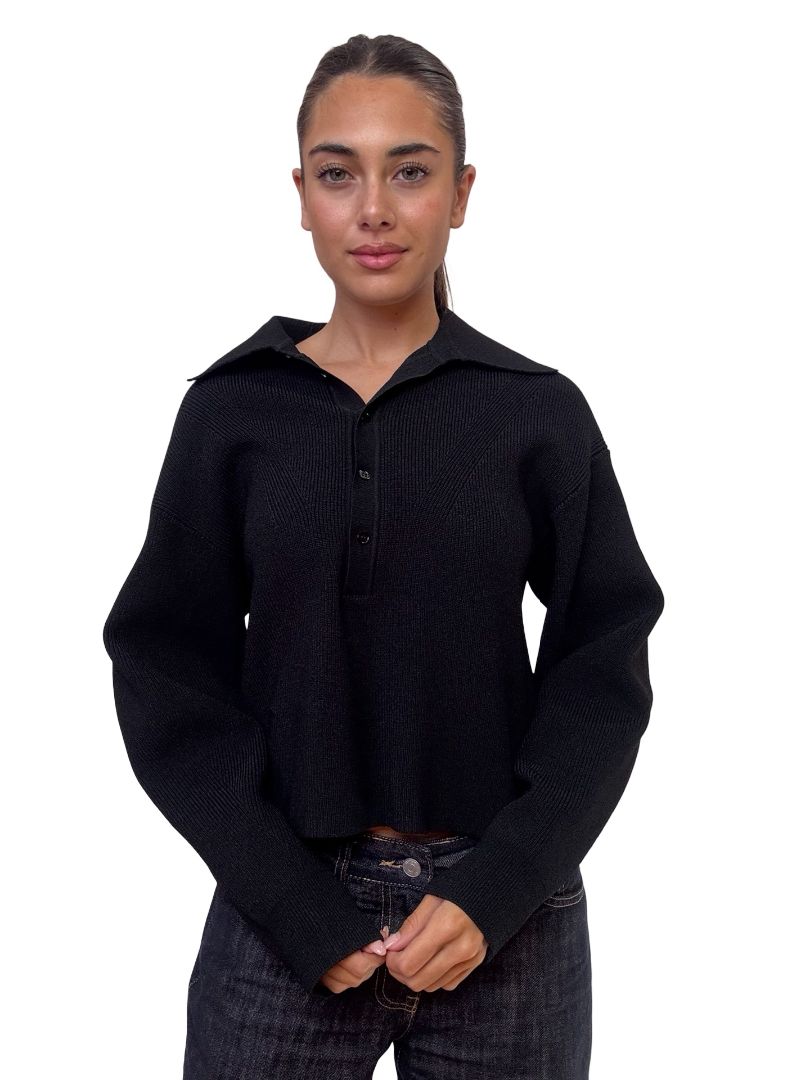 Scanlan Theodore Black Crepe Long Sleeve Polo. Size: S