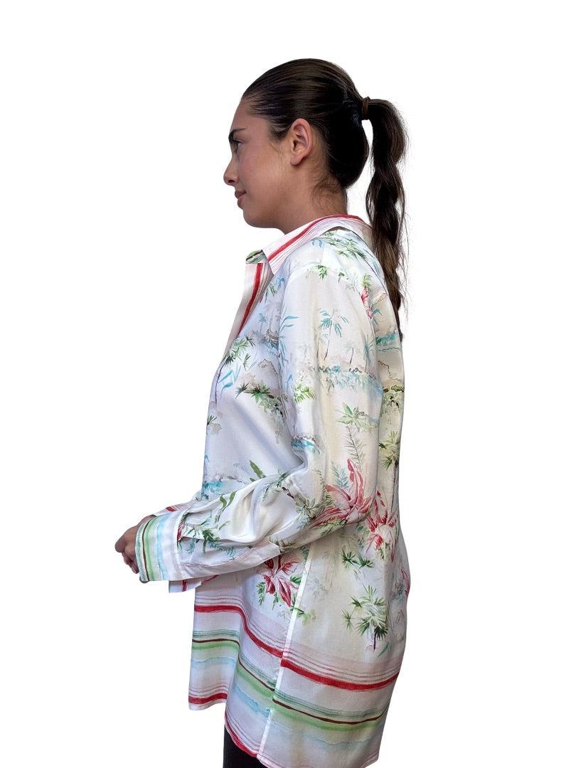 True Royal Multi-Colour Palm Tree Tricolour Print Shirt. Size: 40