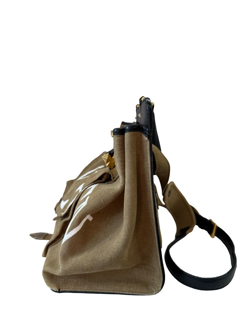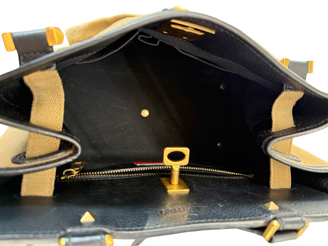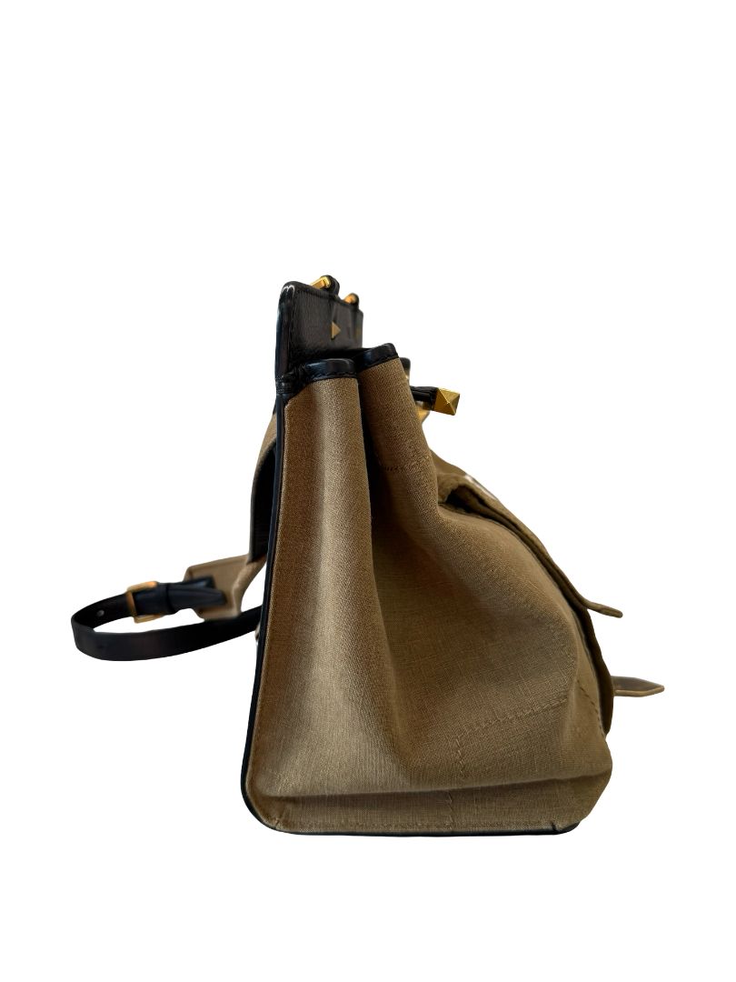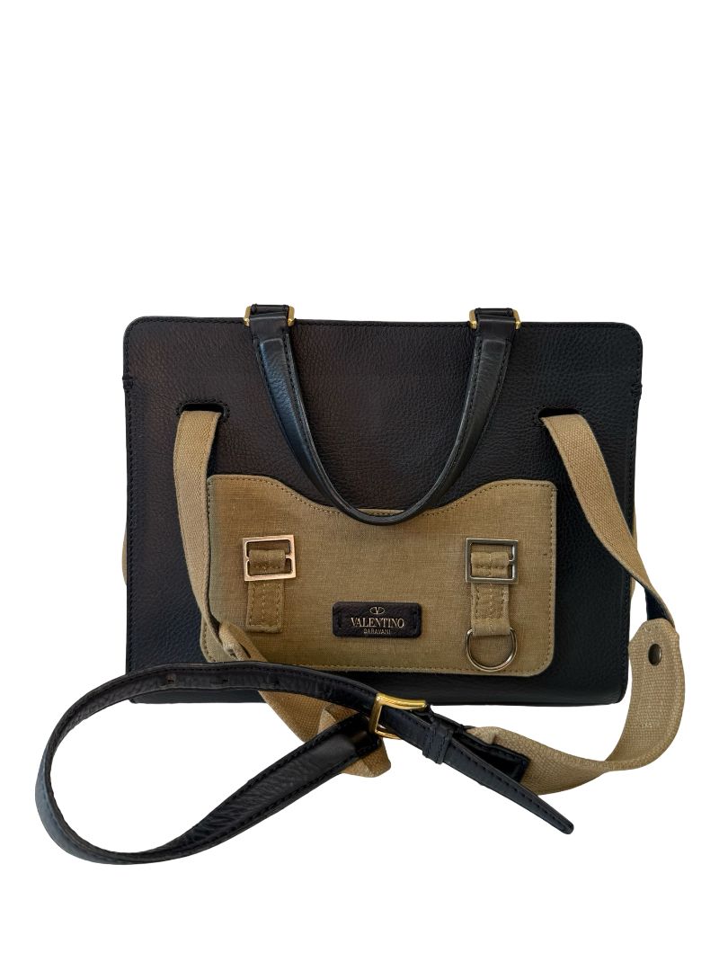 Valentino Garavani Black / Khaki Calfskin & Canvas Handbag.