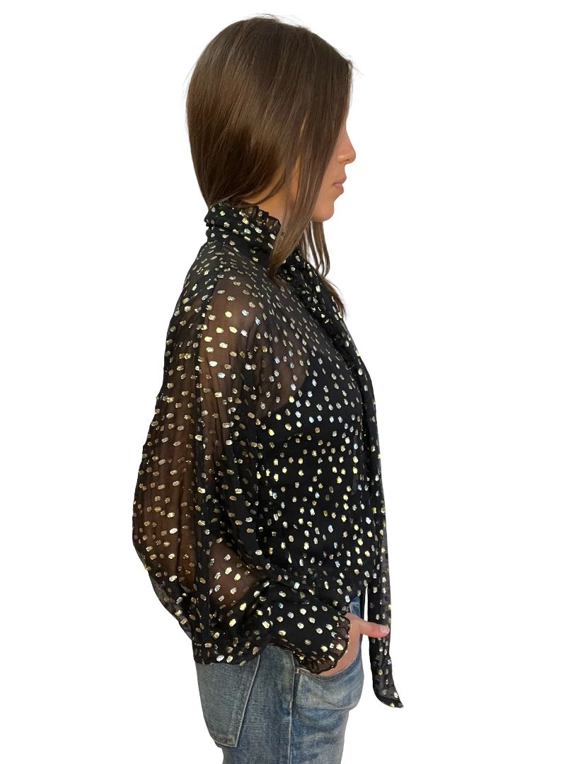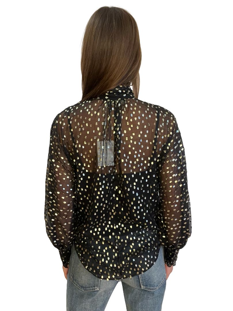 Zimmermann Black / Gold Lurex Spot Blouse. Size: 0