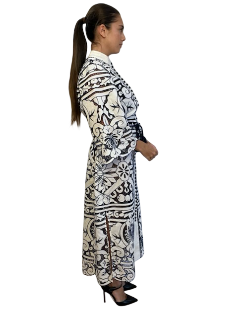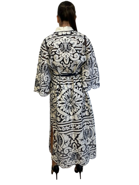 Zimmermann White & Navy Embroidered Button Up Dress. Size: 2